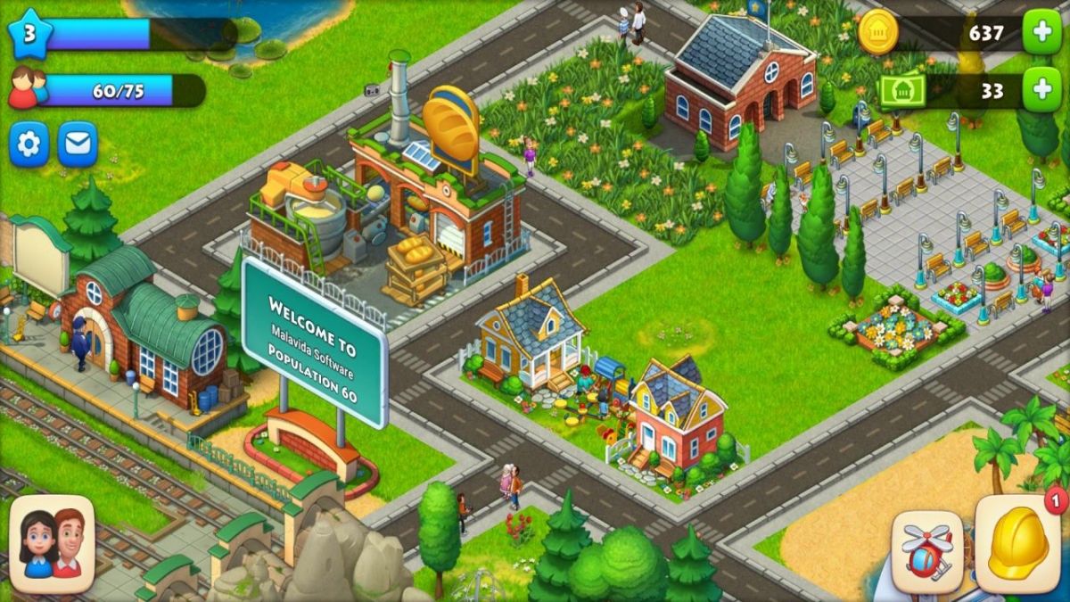 Expand your town by unlocking new plots of land. To unlock land, you'll need a specific number of population and coins. Tap on the expanding icon at the edges of your town to check the requirements.